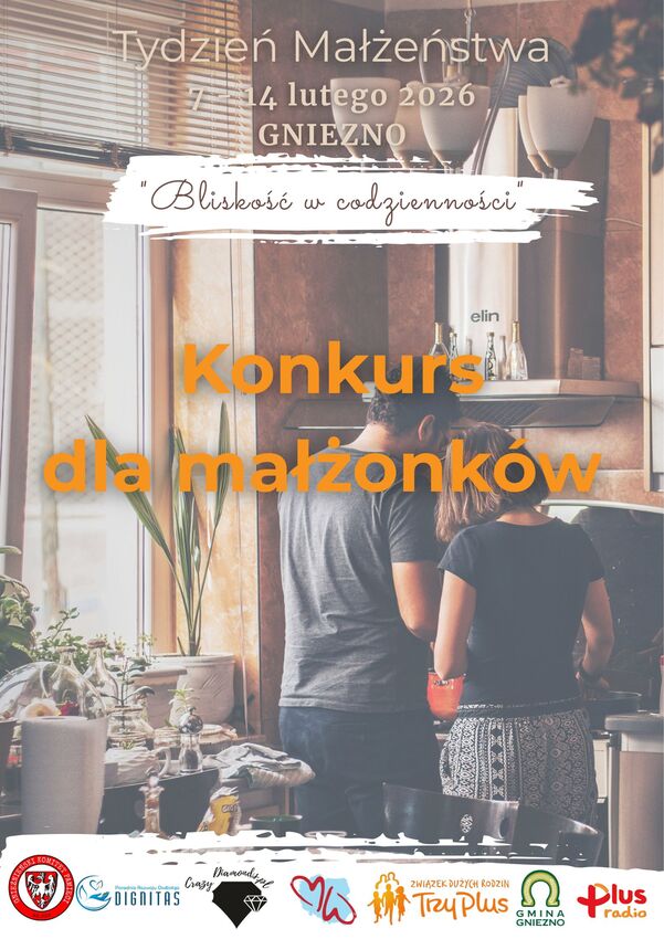 W ramach Tygodnia Małżeństwa Związek Rodzin Trzy Plus koło miasto Gniezno i gmina Gniezno zaprasza małżonków do udziału w konkursie „Razem – mimo wszystko”. To proste zaproszenie do zatrzymania się na chwilę i podzielenia się tym, co sprawia, że mimo codziennych trudności wciąż jesteście razem.